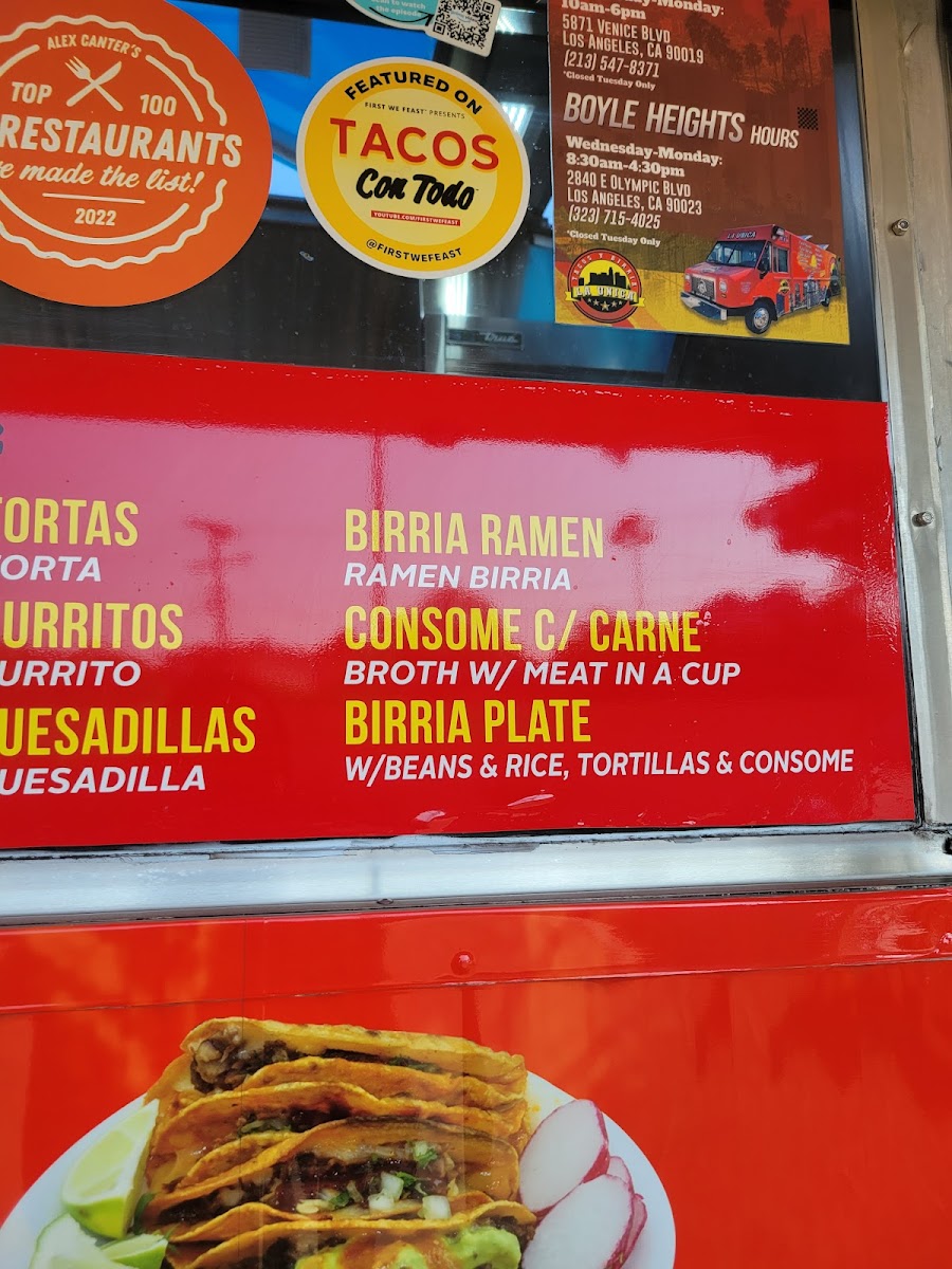 Choice of Birria, Beans & Rice and Handmade Tortillas.